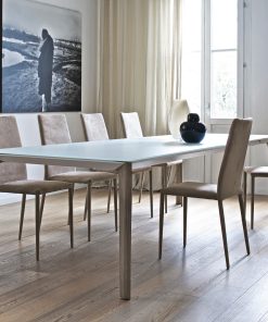 Bellissimo nella sua apparente sobrietà, stiamo parlando del tavolo da pranzo Versus versione allungabile, una soluzione raffinata e funzionale. Il tavolo dispone di due allunghe alloggiate sotto il piano, in grado di portare il tavolo da una lunghezza di cm 160 fino a cm 240.