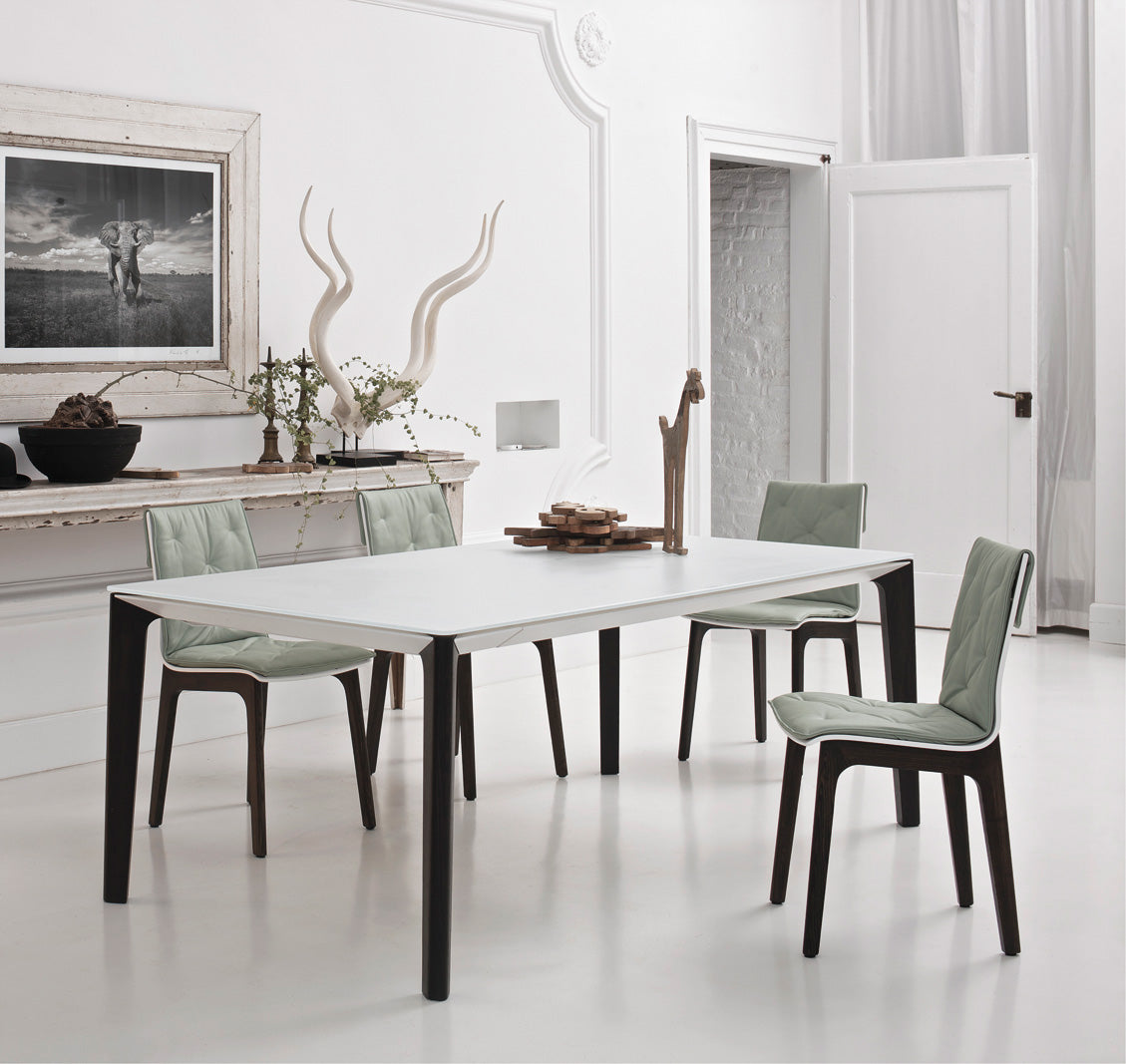 Tavolo da pranzo Versus Bontempi fisso e rettangolare di dimensioni cm 160×90, costitutito da gambe in legno massello, elemento che contraddistingue questo modello anche per il design con angoli arrotondati. Semplice ma accurato, il tavolo moderno Versus è ammirato da tutti gli amanti dello stile contemporaneo, che guarda alla qualità dei materiali e al design Made in Italy.