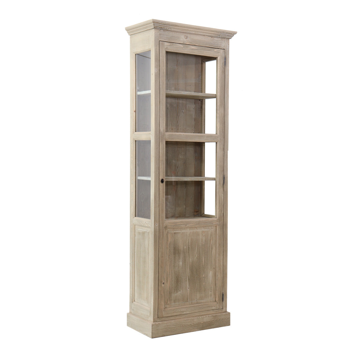 Vetrina a colonna con anta battente vetrata, un mobile valido per la robustezza della struttura che traccia un design classico, realizzata in legno massello di abete. Distinta dalla finitura naturale e della serratura in metallo anticato, questo capiente mobile vuol rappresentare un esempio di arredamento country e retrò