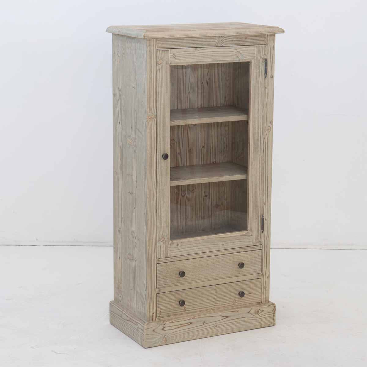 Vetrinetta a colonna dotata di 2 cassetti, anta vetrata e ripiani interni removibili, disegnata da una forma classica. Il nostro mobile vetrina si differenzia per la qualità strutturale, robusta, realizzata in legno massello di abete finitura naturale, colore che la rende ideale all’interno di un arredamento classico e country.