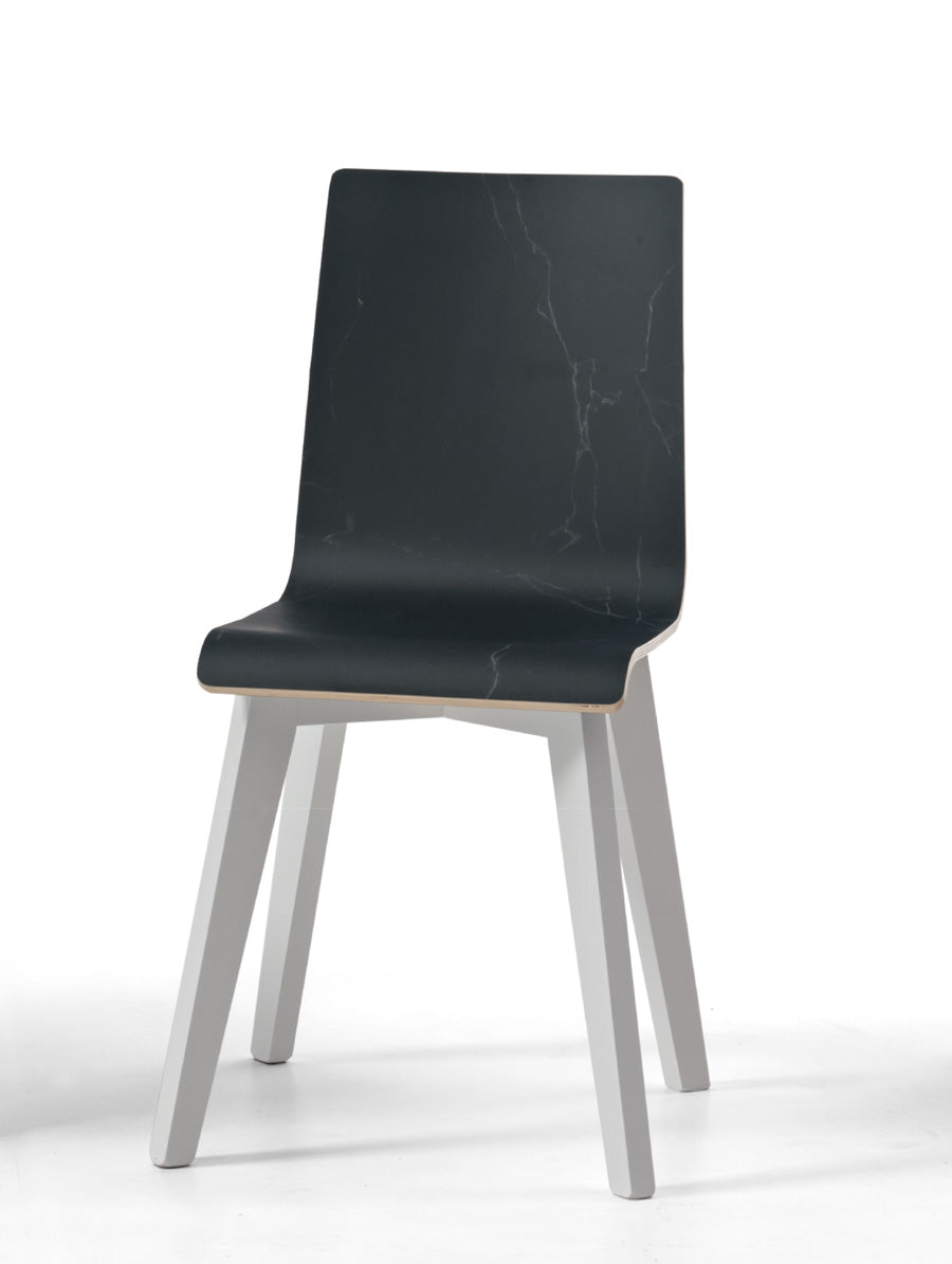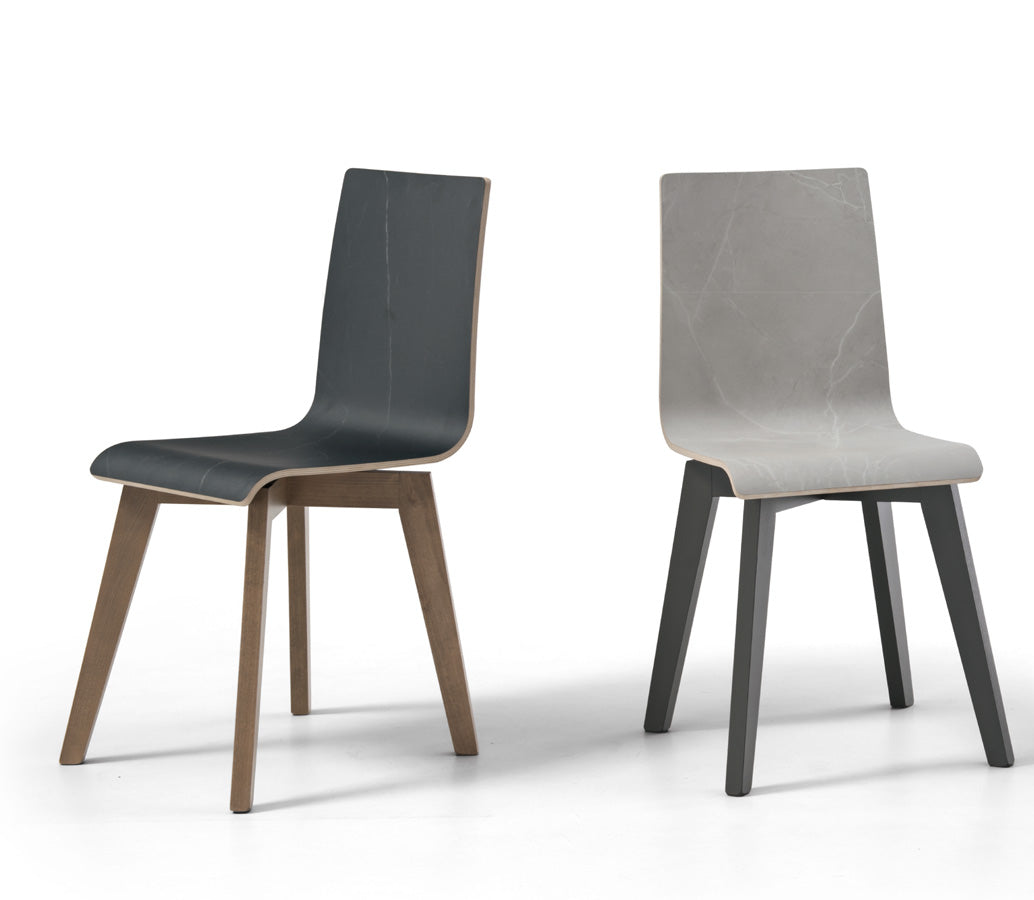 Robusta e singolare sedia moderna composta da gambe in legno e semplice scocca anch’essa realizzata in legno. Il punto di forza di questa sedia design oltre alla stabilità e solidità, sta nella possibilità di applicare finiture uniche ed innovative basate sull’effetto marmo, oltre a queste, potrai scegliere anche soluzioni più sobrie e classiche.