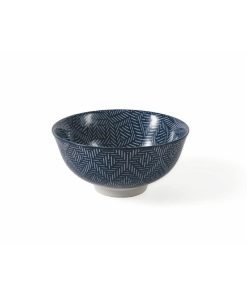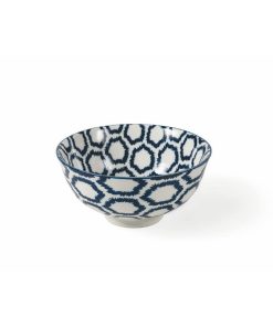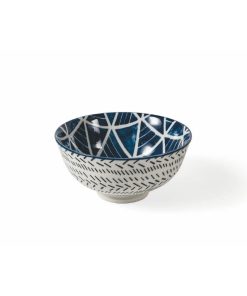 VILLA D’ESTE SET 4 CIOTOLE IN GRES SMALTATO DECORAZIONE TRIBALE BLU E BIANCA