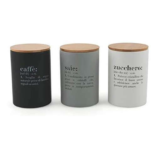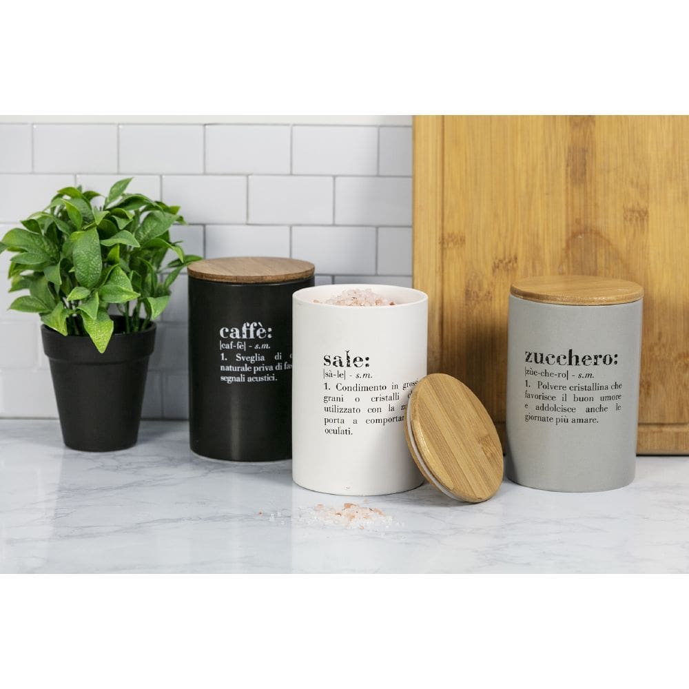 VILLA D’ESTE SET TRE BARATTOLI VICTIONARY LIGHT IN GRES E TAPPO IN BAMBOO