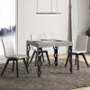 Tavolo allungabile quadrato con gambe in metallo e piano in legno con apertura a libro. Il tavolo moderno Vittorian è tra i più apprezzati per l’originalità del design, ponendo anche attenzione all’aspetto funzionale e qualitativo, reso possibile dalla professionalità di esperti Made in Italy. Le gambe sagomate e traforate dal design geometrico, rappresentano un elemento innovativo che realizzano un oggetto di design anche per un tavolo da pranzo.