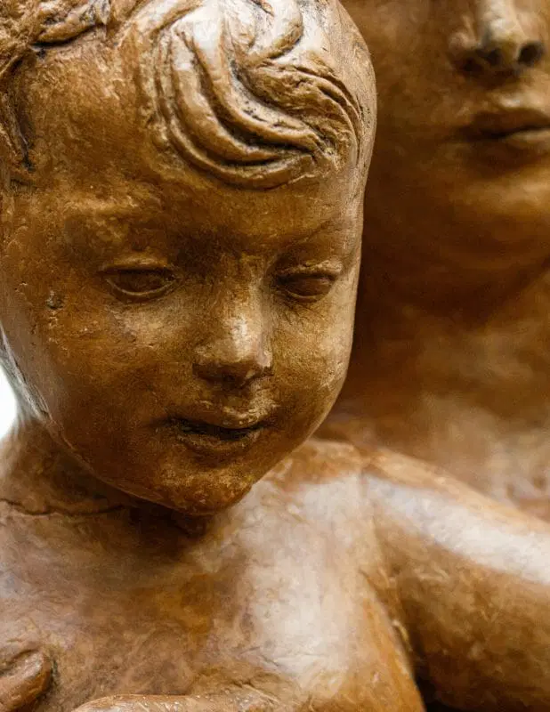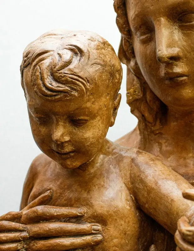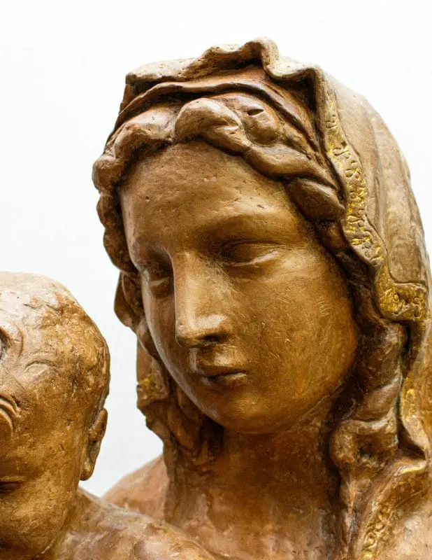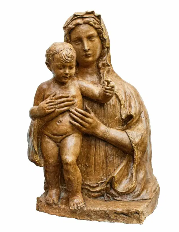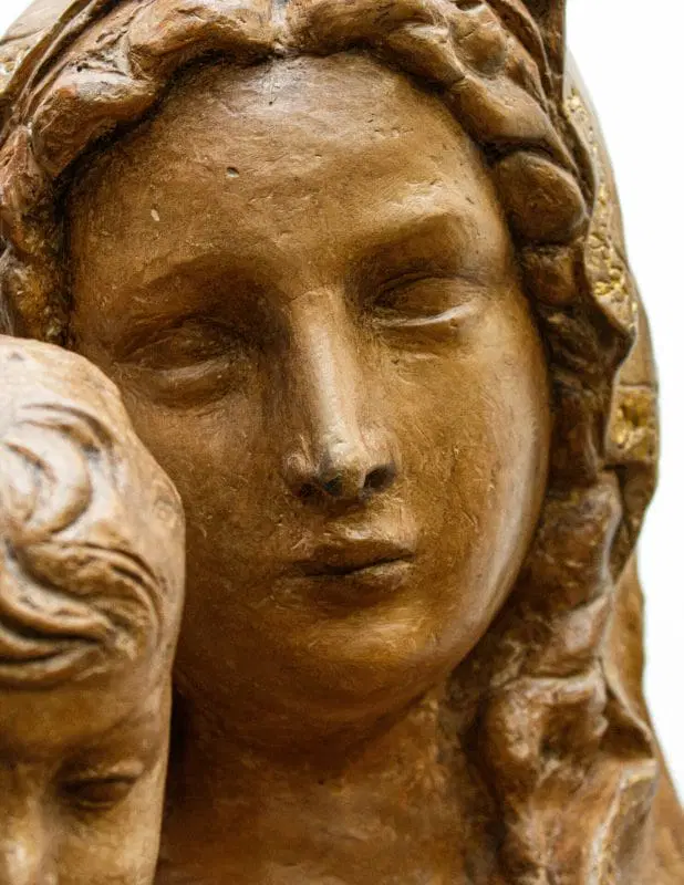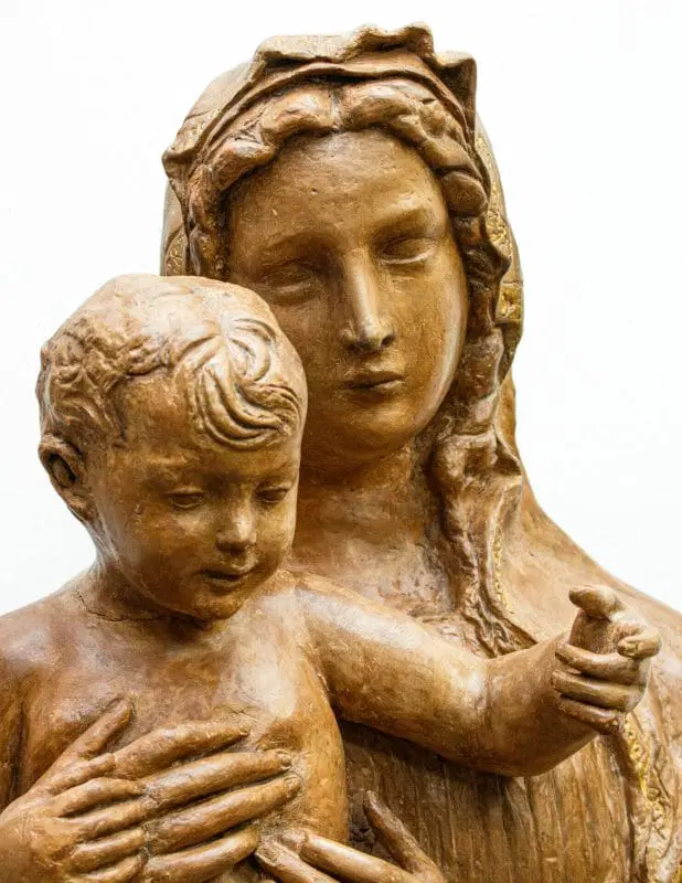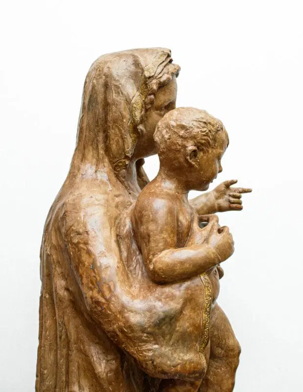 La raffinata ed elegante scultura in terracotta raffigurante la Madonna col Bambino, di chiara matrice fiorentina della seconda metà del XV secolo, è ascrivibile alla cerchia di Benedetto da Maiano (1442-1497).