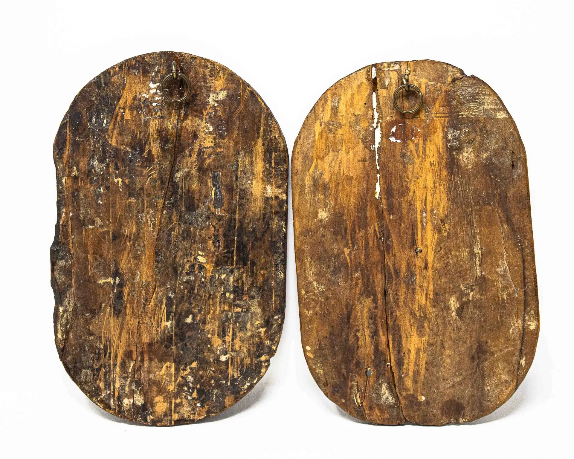 Due placchette intagliate di legno di pero, cm 16 x 10,5; cm 17 x 10,5