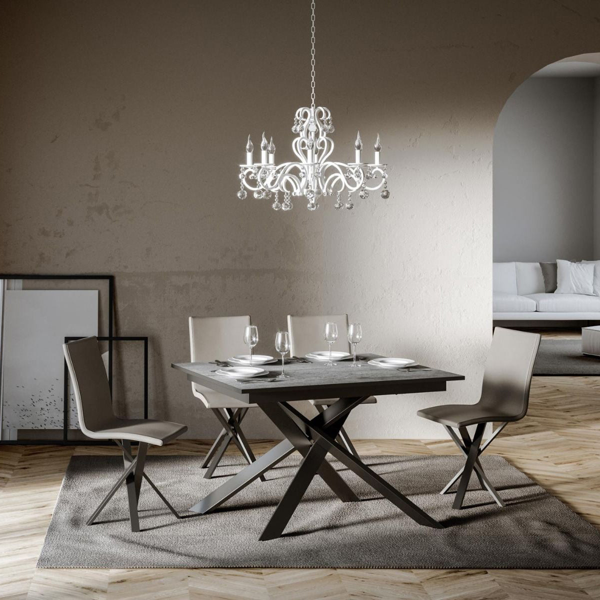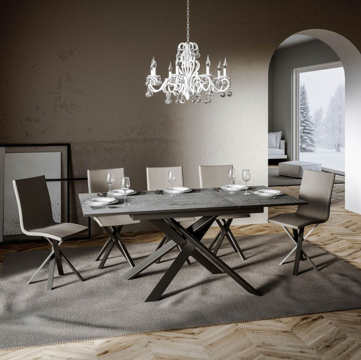 Scegli il tavolo moderno allungabile Yasir se hai bisogno di un tavolo accattivante con un’estensione non troppo pronunciata, dal momento che include un’allunga laterale da cm 60, con piano da cm 120. Le gambe in metallo intrecciate colore antracite e le diverse finiture disponibili, sono gli elementi che realizzano il tavolo davvero esclusivo.