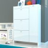 Funzionale scarpiera moderna, realizzata in legno, colore bianco lucido. Il mobile si presenta con 2 ante, al loro interno un vasto spazio per riporre tutte le vostre scarpe, grazie ai 28 ripiani presenti, più un piccolo appendino per gli stivali ad esempio. Dal design contemporaneo, questa scarpiera è perfetta da collocare in qualsiasi tipo di stanza della vostra casa, donando luce e un look elegante.