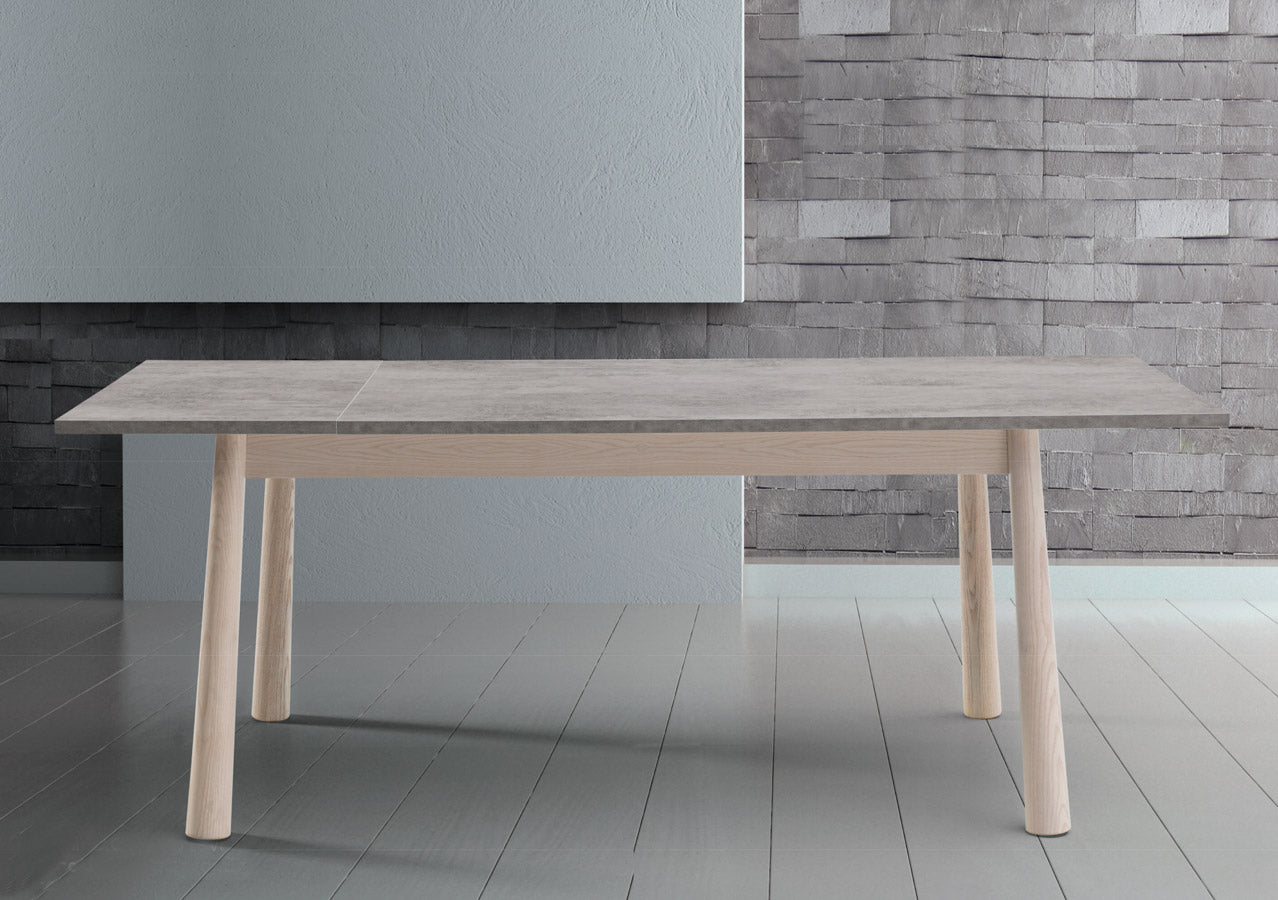 Tavolo moderno per sala da pranzo Zelant, caratterizzato da gambe che si allargano verso il basso, dettaglio che definisce un design contemporaneo ed innovativo. Il nostro tavolo allungabile non manca di praticità, infatti, include un’allunga laterale di cm 50, per tutte le dimensioni disponibili, ossia da cm 120, 130 o cm 160.
