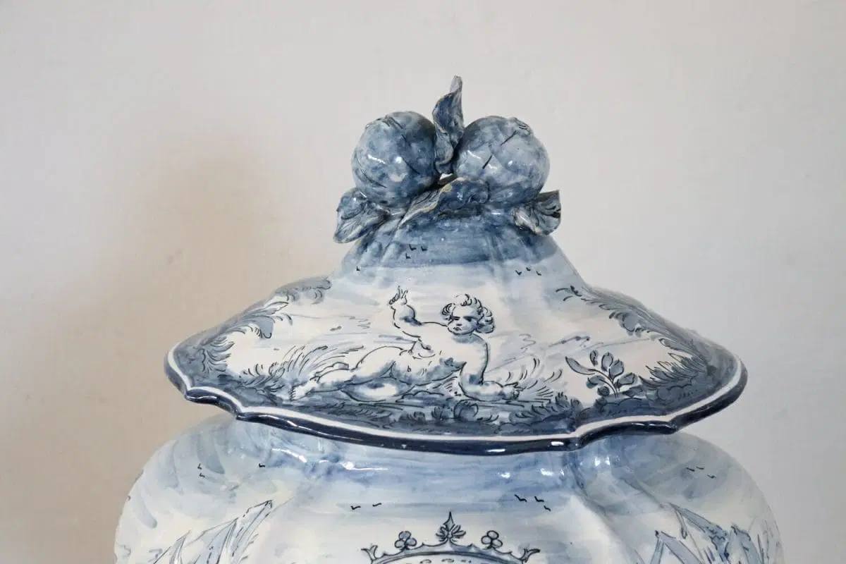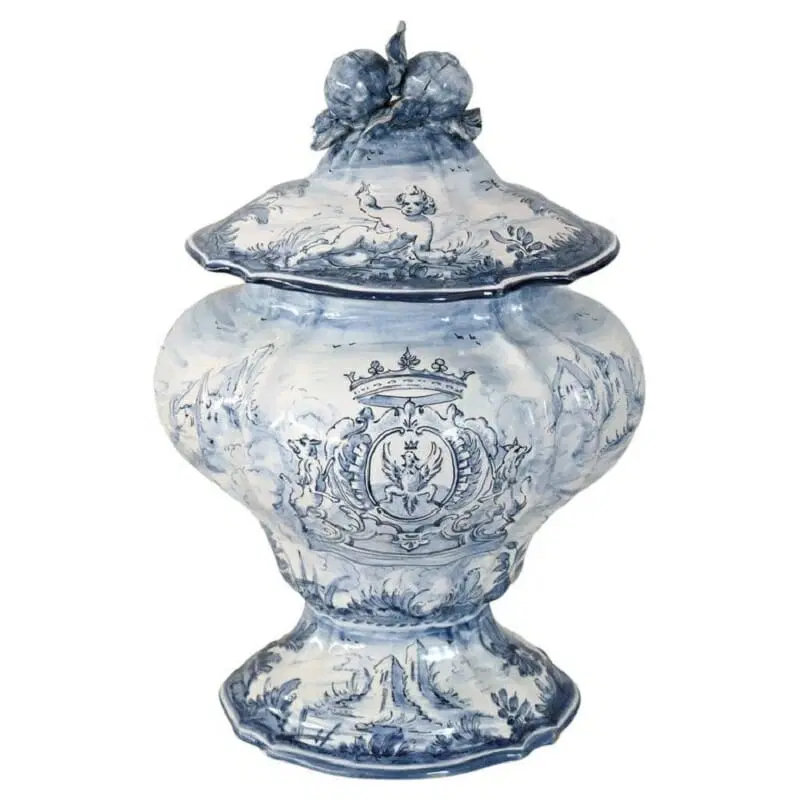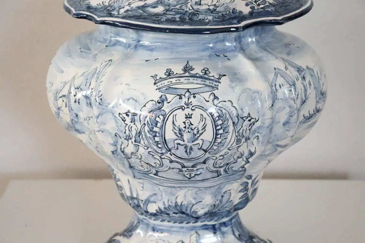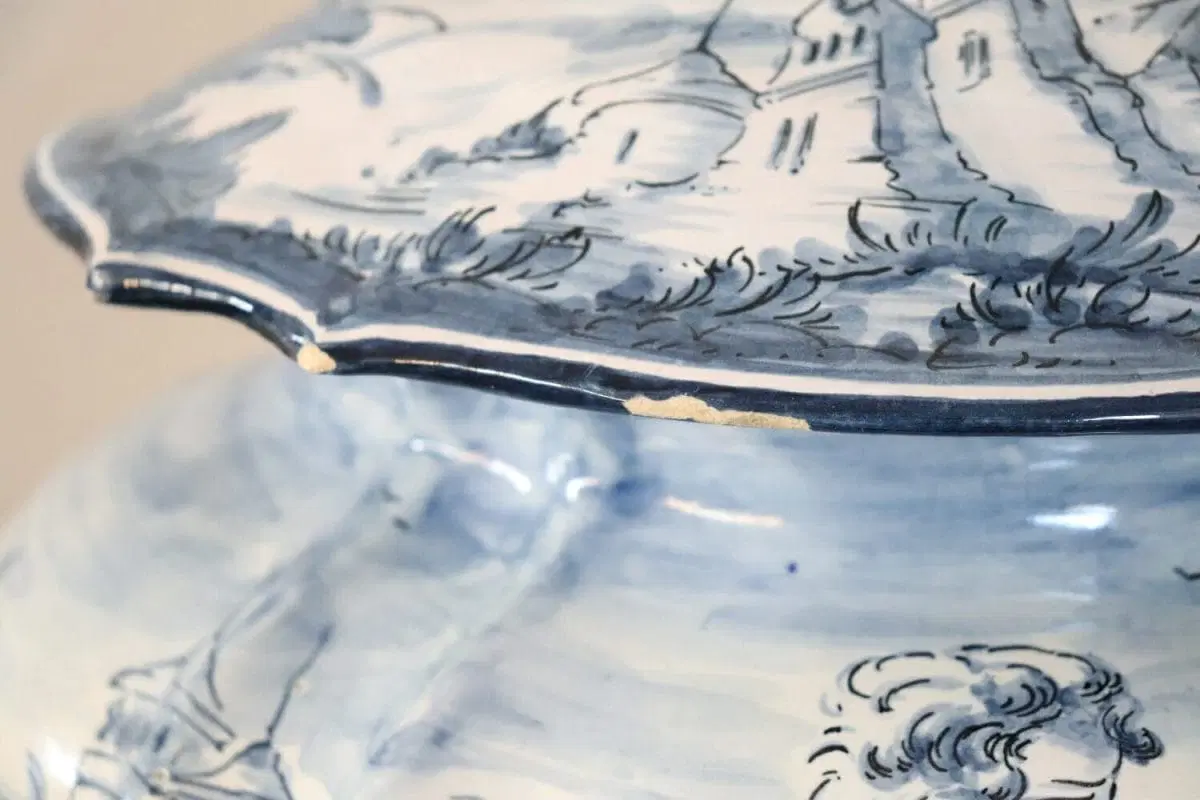 Bellissima zuppiera importante manifattura ceramica italiana di Albisola firmato Alba Docilia. Raffinate decorazioni nei toni del blu. Ceramica da collezione. Alcuni piccoli difetti nel coperchio, vedi foto dettagliate. Vi consigliamo di guardare bene in dettaglio tutte le foto allegate. Proposto ad un’ottimo prezzo trattabile vi invitiamo ad inviarci le vostre proposte di acquisto le valuteremo con piacere.