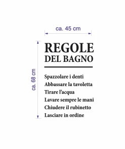 Adesivo murale Wall Sticker Frasi Regole del bagno – idea regalo per la casa Dimensioni 68×45 cm