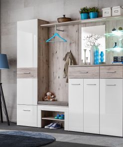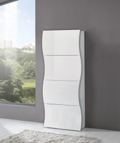 Willow – Scarpiera moderna in legno colore bianco lucido 4 ante a ribalta cm 71x26x161h