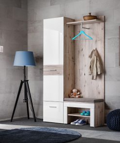 Zareb – Composizione ingresso moderno con armadietto appendiabiti e panca cm 110x32x155h